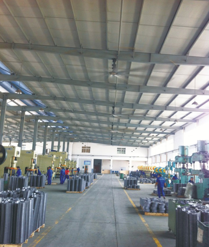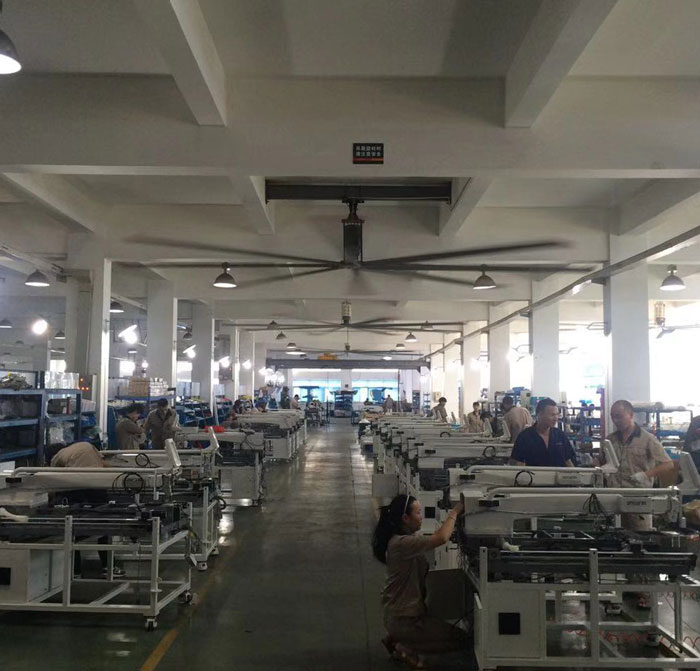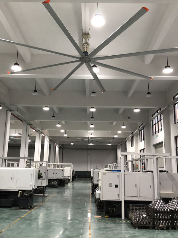 我公司生產(chǎn)的大型工業(yè)吊扇直接懸掛在廠房屋梁下,風力柔和,能加快車間空氣流通,有效降低車間內(nèi)溫度,改善車間空氣環(huán)境質(zhì)量,有利于員工的身體健康。